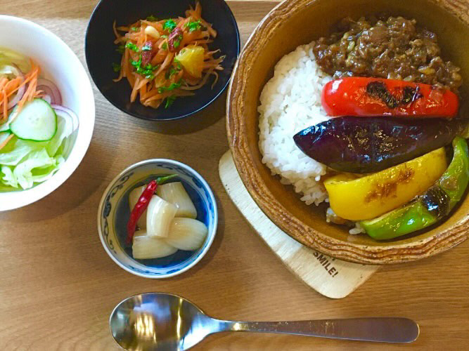 暖炉のある店内でランチ、スウィーツを